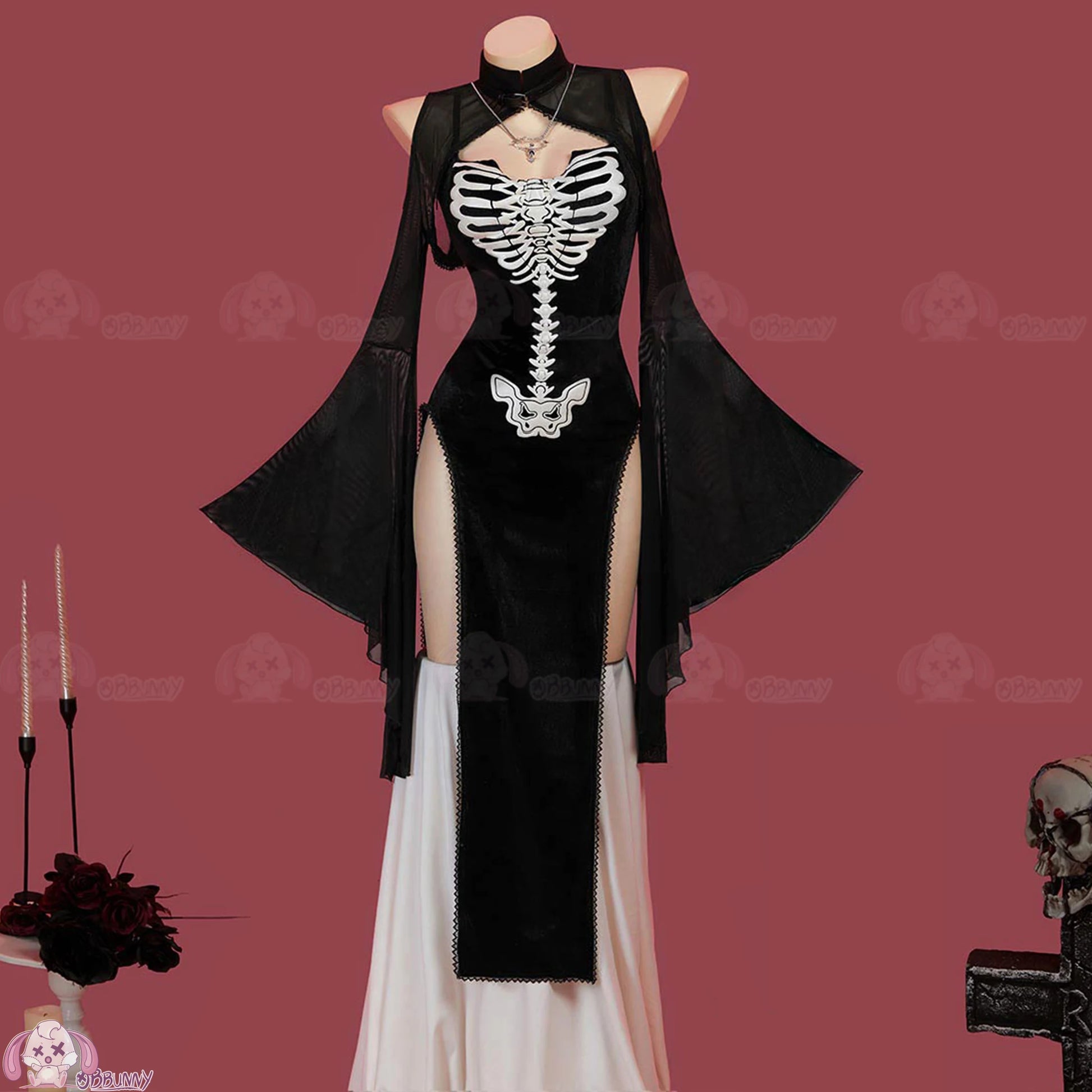 Skeleton Poem Dark Gothic Dress Cosplay Costume Uniform Halloween Carnival Party Christmas Play Role Clothes for Women Onlycos