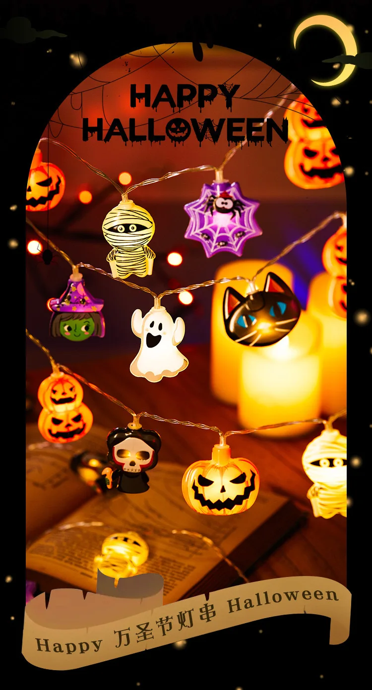 2025 New Halloween LED Lights Spider Demon Pumpkin Lantern Ambient Theme Party Halloween String Decoration Light String Hot Sale