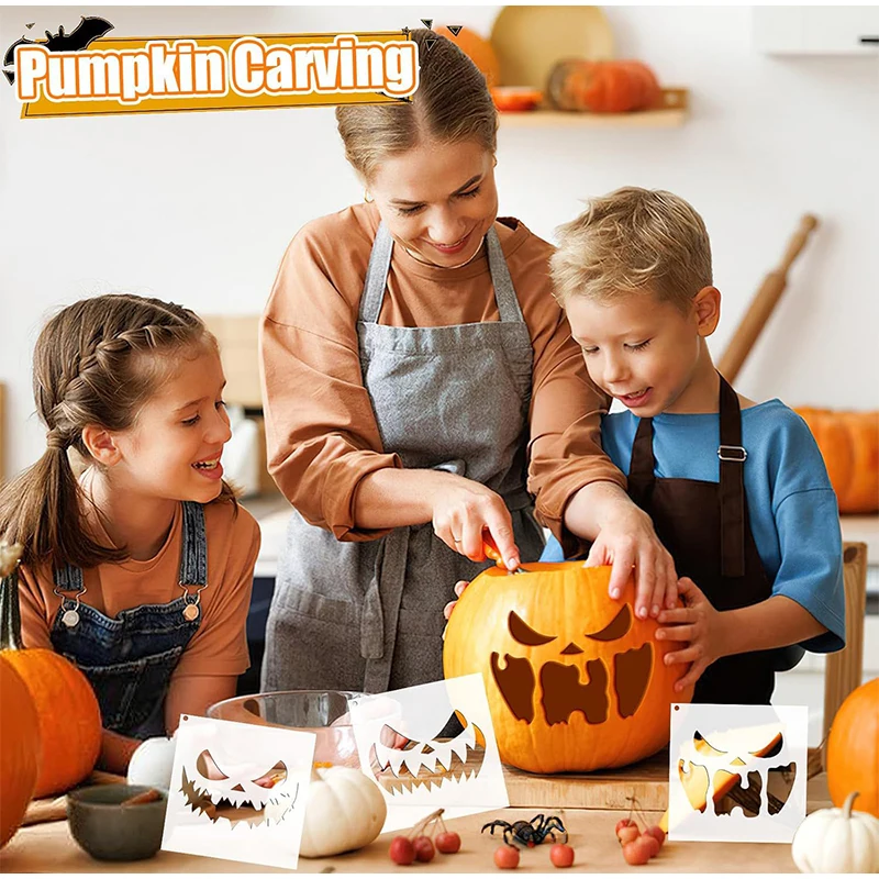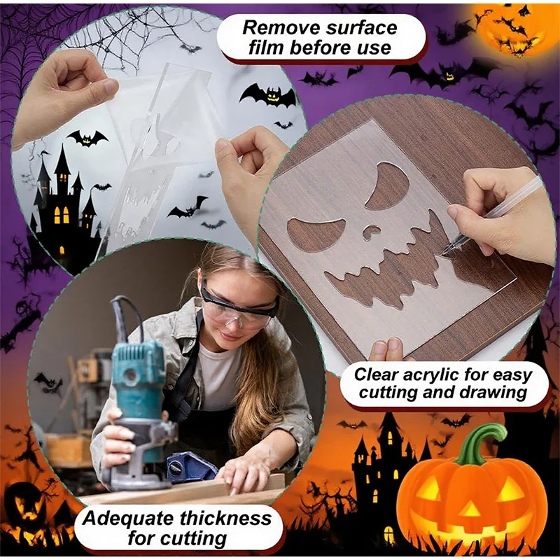 54pcs Halloween Acrylic Router Template for Scary Pumpkin Face Carving Door Mats for Halloween Stencils Woodworking DIY Crafts