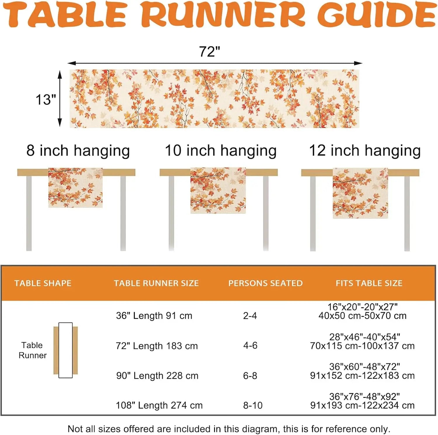 Fall Harvest Branches Maple Leaves Linen Table Runner Party Decor Farmhouse Kitchen Dining Table Runner Thanksgiving Decorations