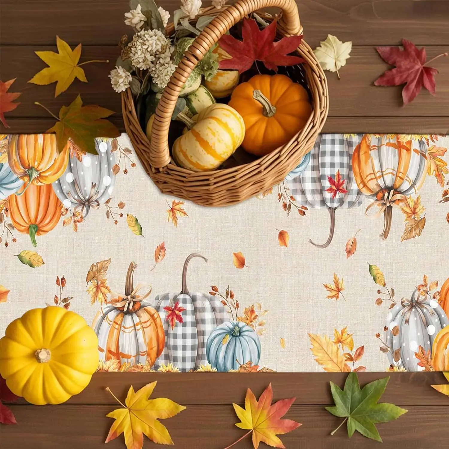 Fall Harvest Pumpkin Straw Man Table Runner Thanksgiving Decoration Washable Autumn Kitchen Dining Table Runner for Table Decor