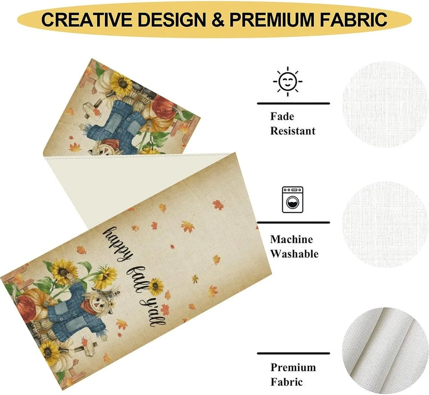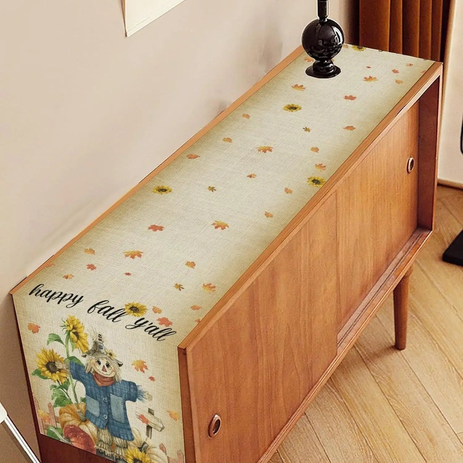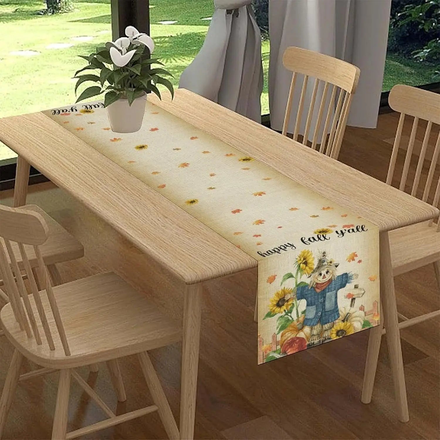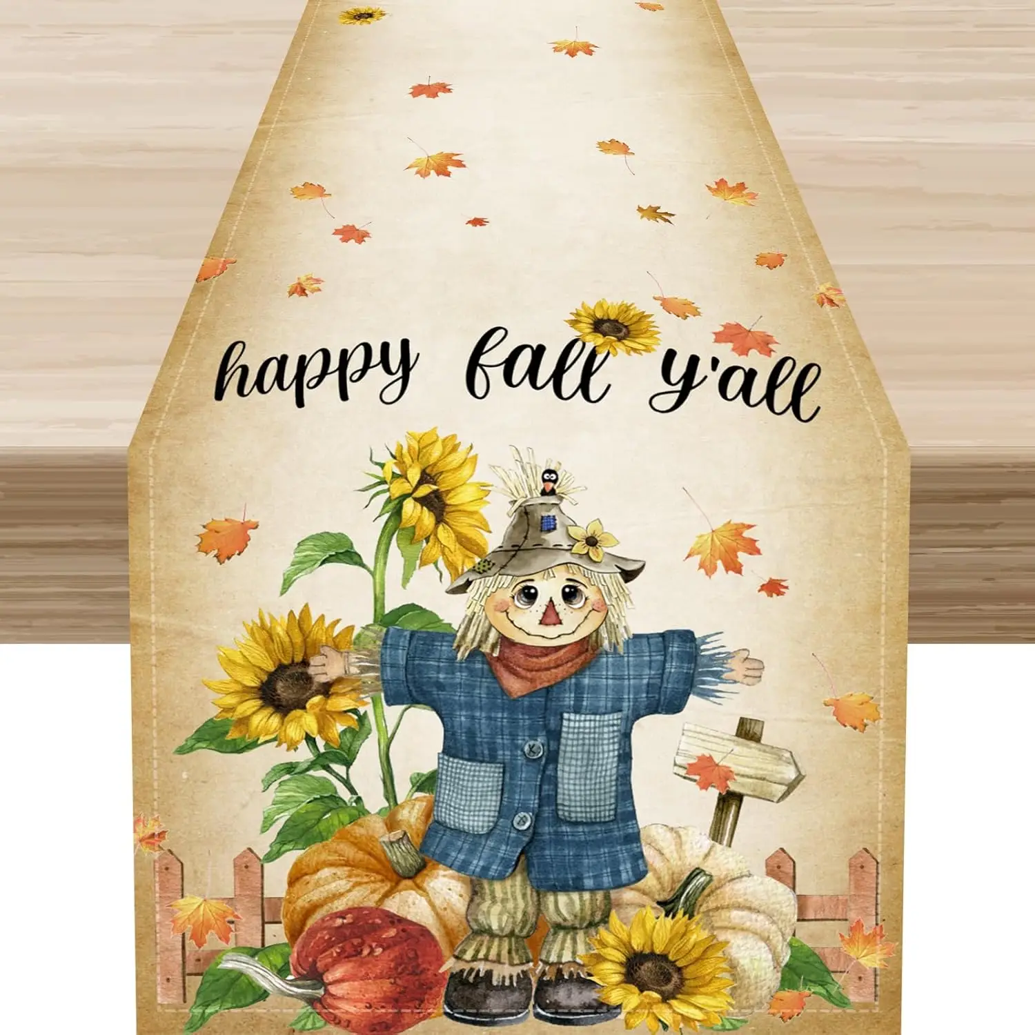 Fall Sunflower Scarecrow Maple Leaf Linen Table Runner Party Decor Autumn Harvest Kitchen Dining Table Runner Thanksgiving Decor