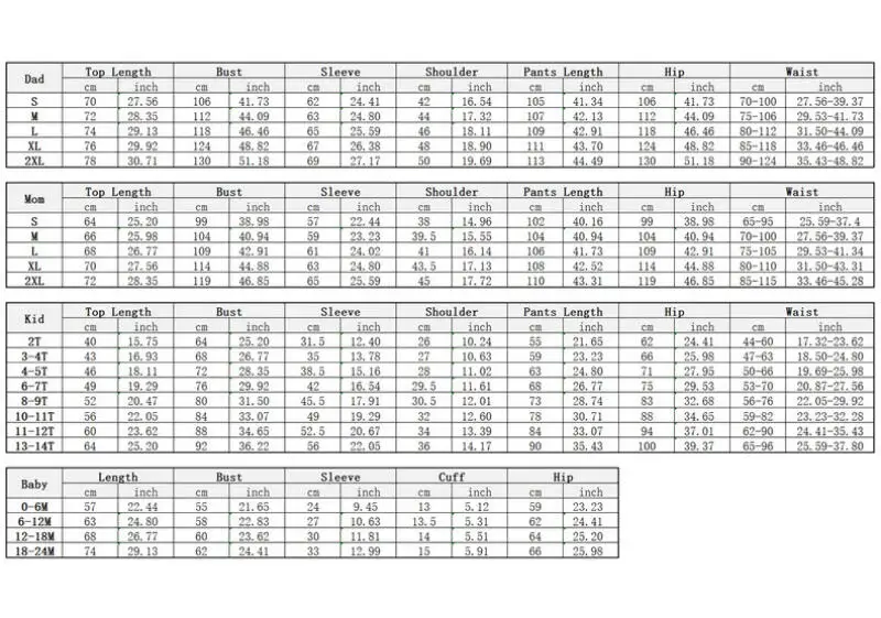 Family Christmas Pajamas Sets for Mother Father Baby Kids Matching Pjs New Years Holiday Xmas Nightwear Jammies Sets