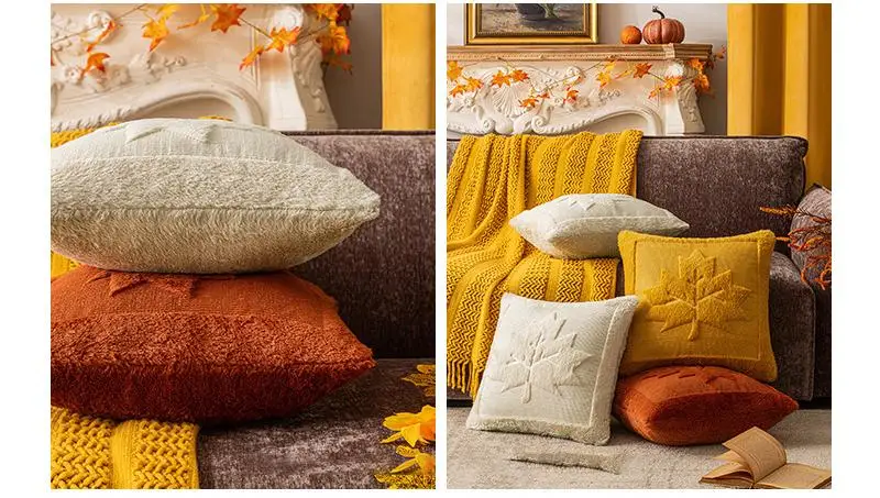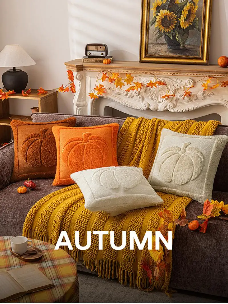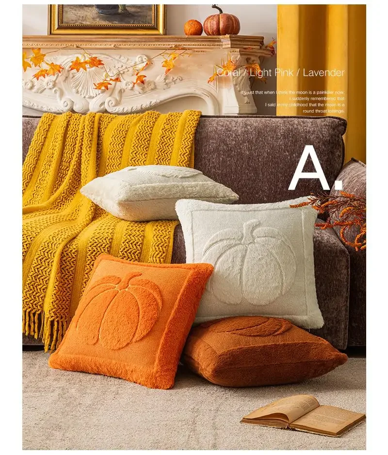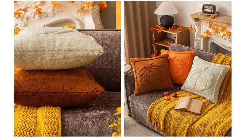 Halloween Pillow Covers Fall Pumpkin Throw Pillows Soft Plush Faux Fur Decorative Cushion Covers for Couch Sofa Bed Porch 45x45