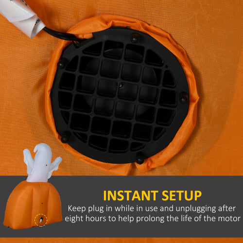 HOMCOM 5ft Halloween Inflatables Outdoor Decorations Ghost with Pumpkin, Outdoor Blow-Up Yard Decor with LED Lights