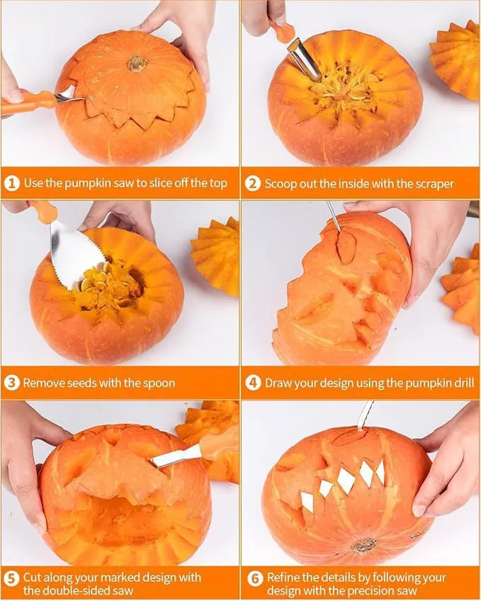 Professional Quality for All Levels: Whether you're a novice or a seasoned carver, this pumpkin carving kit's professional-grade tools ensure you can achieve impressive and detailed results, turning ordinary pumpkins into extraordinary works of art.