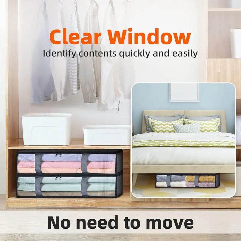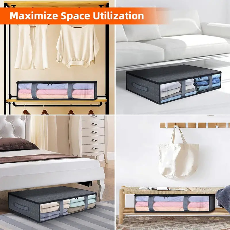 Crafted with high-quality materials, these storage solutions are perfect for clothes, blankets, sweaters, quilts, and even toys, ensuring everything has its place. Keep your home tidy and stylish with our Under Bed Storage Containers.
