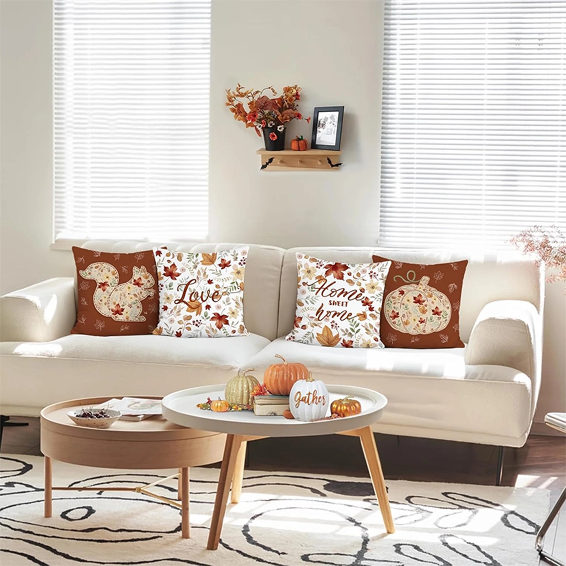 Autumn Harvest Pillow Covers Set: Home, Love & Fall Wildlife Vibes,Sofa cushion cover, home room decoration